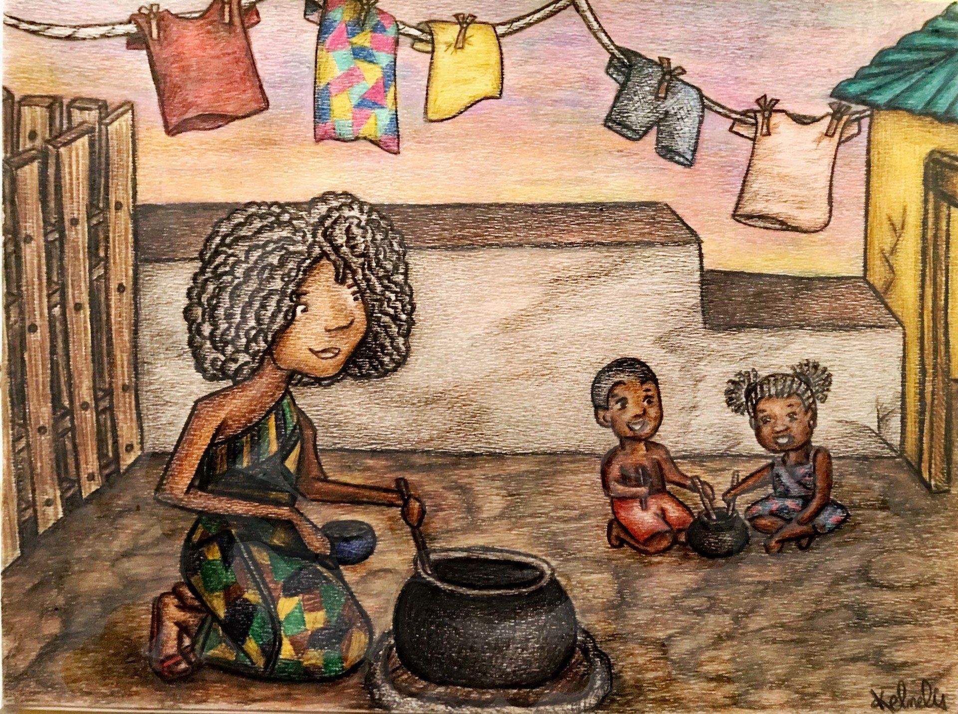 Author’s Notes: The following story is based upon my experiences living in Kwabena, Ghana while working for a non-profit program (8 week program) supplying AIDS education to middle and high school students and their surrounding villages. On the day of the blackout, with zero ambient light coming from nearby cities or towns, the darkness was unbelievable. I looked up and it was genuinely like I had never seen the night before. I could see the entire milky way galaxy brimming with stars and swirls and colors I had never known existed. As I watched the sky, I noticed a woman walking up to the village pavilion in the darkness. When she reached the center of the pavilion she began to sing. Soon more had joined her, until it seemed as if the entire village was singing in 500-part harmony. I did not know the song, but it did not matter. I had seen God. Please understand: I know it was incredibly presumptuous of me, with a bit of white savior thrown in for good measure, that I thought I could write or publish this story, no matter how honorable my intentions were. The real story, is that I am a white girl who was incredibly moved by the people and experiences I was lucky enough to be a part of and love. I wrote what I felt but it is not my story to tell . I am sharing it here simply because it's a part of my heart, not because I think it deserves any special acclaim. The people who inspired this story can be helped by providing either your volunteer or monetary support here: https://thesankofacenter.org/ NIGHT-MAGIC Written by and Illustration above by Laura Kelmelis Tonight, is the blackout, and twins, Kwame and Ama, can’t wait! Villages in Ghana take turns turning off all electricity to ensure everyone in the country has enough. Tonight, is their turn. Barely able to stand still, the twins share their thoughts without saying a word. Tonight, their grandmother, Nanabaa, will welcome the Night-Magic! - But now, it is time for work. And they must wait… Waiting is hard when you know something exciting will happen! Nanabaa and the twins walk to the well to collect water for the day. Kwame runs too fast and Ama calls after him. Nanabaa gives him a disapproving look. Ignoring Kwame’s glare, Ama smiles triumphantly, reminding him she is older by two entire minutes and should pay attention when she calls. Rolling his eyes, Kwame races ahead, forgetting the water he carries. It sloshes from his bucket, droplets dancing behind him, Kwame laughs, “The water is so excited it’s throwing a parade!” Suddenly, Ama is certain her brother is a genius. - But now, it is time for work. - and her perfect plan, must wait… One, two, three, buckets tumble into the bin to last the day. Four, five, six, dishes dunk, scrubbed clean of gunk and grime. Seven, eight, nine, clothing washed and hung on the line. Ten, bubbles boiling in the cauldron filled with stew. Chores done, bellies filled, - still, they must wait… Ama shares her incredible idea with Kwame. If it works, tonight’s blackout would be more magical than ever! Together, they plan a surprise for Nanabaa. Calling for their friends to join them, they huddle close to speak in secret. Ama gives each of them an important job to do. “Get everyone, and whatever instruments you can carry!” Nanabaa’s footfalls carry across cracked clay, Her heart lurched – if Nanabaa discovers what they are doing, it would spoil her surprise! Ama’s eyes beg Kwame to distract her. A silent thank you on her lips, she watches him drift out of sight. Ama gets to work, The bright, African sun fades behind the haze of heat. Soon, the waiting would be over… One by one Ama’s friends return to help, bringing villagers eager to join in the surprise for Nanabaa, Fountain of Wisdom, Keeper of Songs. Tingling with excitement, Ama searches the growing darkness. As if in answer, Nanabaa and Kwame appear on the horizon. Ama runs to help her brother, both grinning wide with success. The wait is over! “Akwaaba!!” the crowd cheers, welcoming them home. The twins giggle at the surprise on Nanabaa’s face, urging her to lead the parade. The timekeeper strikes the Gankogui bell, The Boba drums call, The Sogo drum beats, Goats, chickens, cows, and donkeys’ clop in time, Excitement ripples through the crowd as Nanabaa claps with glee. With love and laughter in her ancient eyes, Nanabaa asks the twins to stand with her. This time they get to help! Ama and Kwame know Nanabaa’s motions by heart. Lifting their arms to the heavens, the village watches in hushed anticipation. Nanabaa’s voice breaks the silence, ringing clearly in the warm night air. A low and rich tone fills the darkness, Ama and Kwame sing back in perfect harmony, Nanuma wyee ay, nanuma? “As we journey through this life, have we done enough to get into heaven?” One by one, the people of the village join in Nanabaa’s song, Tears of joy fill her eyes as 500 voices merge into one, The night-sky begins to dance, swirling spirals of light connecting dark inky blues. Nanuma? “You have done enough!” the universe calls in return. Tonight, is the blackout. There are no electric lights to stop the universe from speaking, There is no hum of generators to drown out the sounds of life. “Akwaaba!” they cry, to welcome the Night-Magic as it fills the sky. ++++++++++++++++++ Background Information Say What? Did you know Ghana’s official language is English? English was brought to Ghana during Colonial times. It is used primarily for official government business because there are over 250 different national and regional languages spoken throughout the country! The most common regional language is Akan. What’s in a Name? Ghanaian names are rich with meaning. They are usually based on the day a child is born, whether they are male or female, and in what order they were born in their family. Another name is added to identify children as twins, and can show which is younger, and which is older. Religious and 